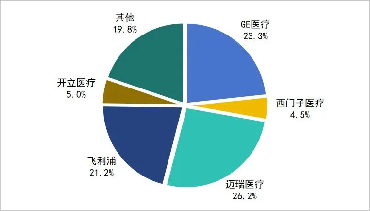 我國(guó)US市場(chǎng)規(guī)模約180億元,GE醫(yī)療(26%)、邁瑞醫(yī)療(24%)、飛利浦(24%)三家企業(yè)合計(jì)占據(jù)市場(chǎng)75%以上份額。隨著設(shè)備更新落地,國(guó)產(chǎn)品牌市場(chǎng)份額占比明顯提升,截至2024年三季度,US國(guó)產(chǎn)品牌占比提升至41%(邁瑞醫(yī)療26%、開(kāi)立醫(yī)療5%,其他10%),GE醫(yī)療、飛利浦分別下降至23%、21%,預(yù)計(jì)2024年第四季度以及2025年上半年,隨著邁瑞醫(yī)療、開(kāi)立醫(yī)療等企業(yè)參與更多設(shè)備更新采購(gòu),國(guó)產(chǎn)品牌市場(chǎng)份額將進(jìn)一步快速提升。